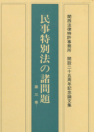 民事特別法の諸問題 第3巻 関西法律特許事務所開設25周年記念論文集 発行:1990年6月 関西法律特許事務所 |