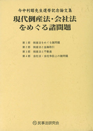 現代倒産法・会社法をめぐる諸問題 今中利昭先生還暦記念論文集 発行:1995年11月 民事法研究会 |