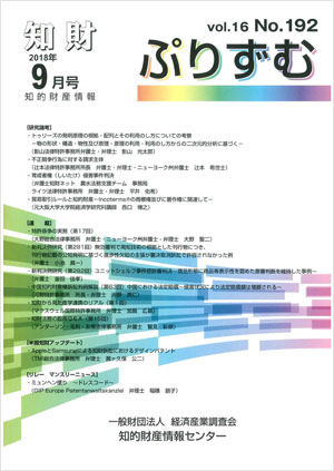 発行:2018年9月 一般財団法人経済産業調査会 知的財産情報センター |
